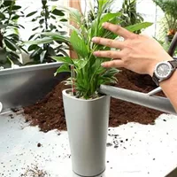 Solche wasserspeichernden Blumentöpfe werden im Handel in den unterschiedlichen Ausführungen angeboten. Bei manchen wird das Wasser über Stoffbänder oder Dochte nach oben in das Pflanzsubstrat geleitet.