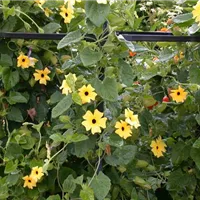 Wer sich nicht ganz sicher ist, ob er Kletterpflanzen in seinem Garten haben möchte, der kann auch Kletterprofis auf Probe in den Garten holen. Einjährige Kletterpflanzen eignen sich besonders gut für kurzfristige Begrünung mit Kletterpflanzen und in nur einer Saison breiten sie sich auf mehreren Metern rasend schnell aus. Dabei können einjährige Kletterpflanzen genauso vielfältig eingesetzt werden, wie ihre mehrjährigen Geschwister. Duftwicke, Kapuzinerkresse und Schwarzäugige Susanne eignen sich besonders gut für das Beet an einer Rankhilfe. Maurandie und Prunkwinde machen sich gut an Hauswänden und sind ein hübscher blühender Sichtschutz. Ganze Pavillons und Pergolen erklimmen in einer Saison Zierkürbis, Glockenrebe, Japanischer Hopfen und die Feuerbohne.