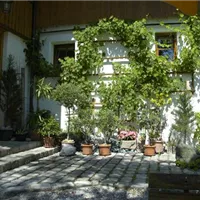 Kletterpflanzen bieten für den Garten eine Vielzahl von Einsatz- und Gestaltungsmöglichkeiten. Wer erstmal klein anfangen möchte, der holt sich für seine Kletterpflanzen eine kleine Pyramide, um die sich die Arme der Kletterpflanze winden können. Dann sollte aber auch auf die Wuchseigenschaften der Pflanze geachtet werden. Ein bisschen höher hinaus geht es dann mit einem Rankgitter oder einem Spalier. Die lassen sich an einer Hauswand befestigen und sorgen so dafür, dass die Pflanze ganz einfach nach oben klettern kann. Aber Kletterpflanzen können nicht nur in den Himmel klettern, sondern auch hoch und runter. Natürlich nur, wenn man ihnen zeigt, wie das geht. So kann man mit Kletterpflanzen auch einen Bogen begrünen, der den Eingang zum Garten bilden kann oder einfach eine gemütliche Sitzecke einrahmt. Wer dann noch Kletterpflanzen mit duftenden Blüten pflanzt, fühlt sich unter dem Bogen wie auf Duftwolke 7. Und mit einigen Kletterpflanzen lassen sich ganz á la Dornröschen auch ganze Hauswände begrünen. Die große Auswahl an Kletterpflanzen macht all das möglich. Von wegen Märchen!